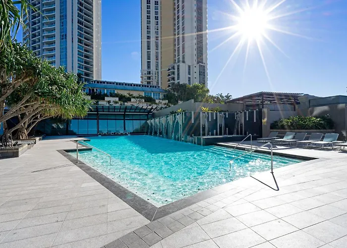 Das 1-Zimmer-Circle On Cavill High Floor 1 Bedroom Apartment - Coasthm Gold Coast liegt im Stadtteil Coloane rund 5 Minuten zu Fuß von der Cavill Mall entfernt und bietet den Swimmingpool und den Whirlpool. Diese Apartments liegt in 250 Meter Entfernung von der Unendlichkeit und verfügt über einen ganzjährigen Außenpool sowie einen Jacuzzi, einen Whirlpool und eine Sauna.